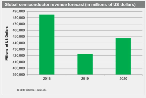 IHS Markit預(yù)計(jì),2020年全球半導(dǎo)體市場收入將出現(xiàn)反彈,從2019年的4228億美元增至4480億美元,增幅會(huì)達(dá)到5.9%。這可能會(huì)讓英特爾、三星、臺(tái)積電、高通、Broadcom等全球頂尖半導(dǎo)體公司松一口氣。